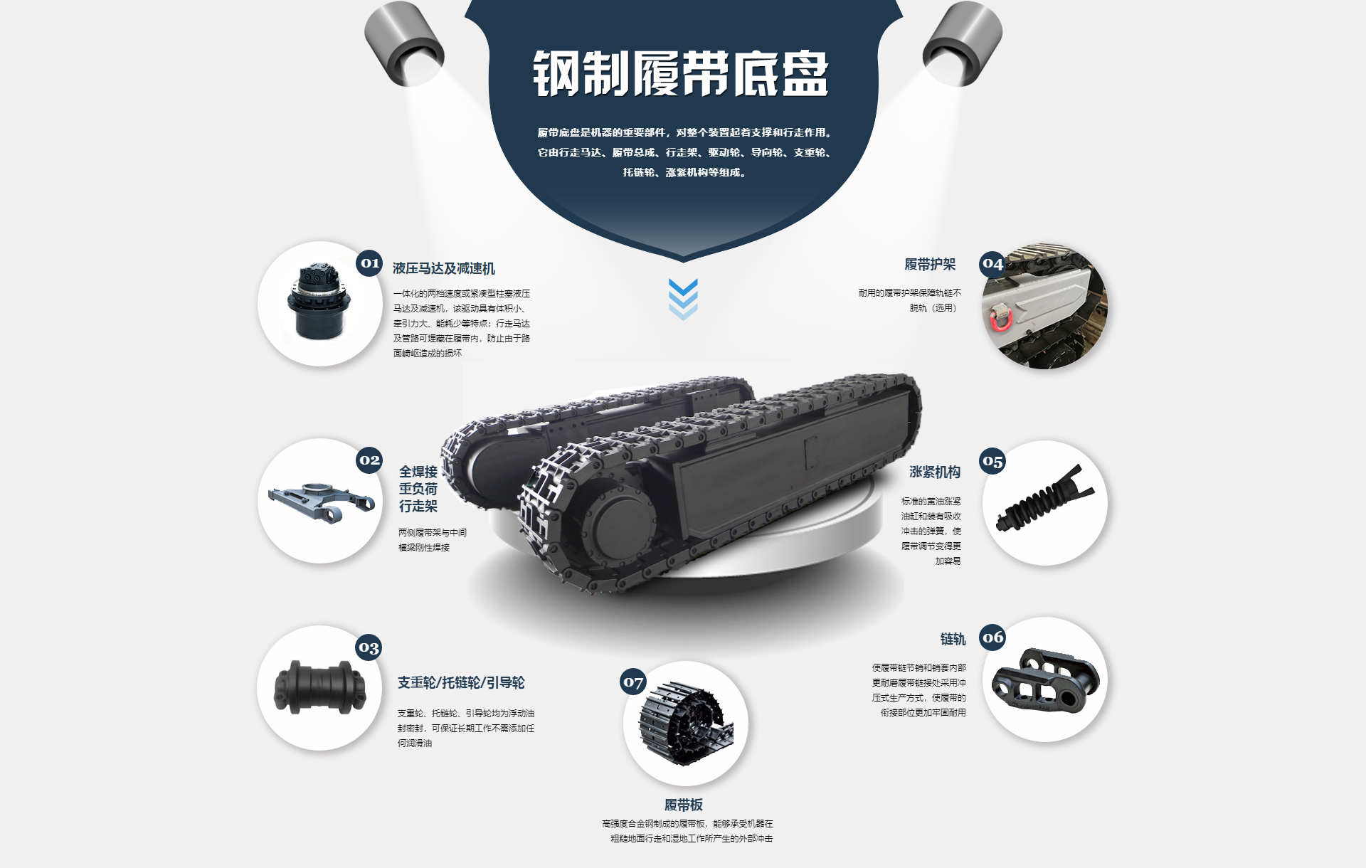 一家致力于工程机械钢制履带底盘和橡胶履带底盘总成的研发、制造和销售为一体的专业企业。
